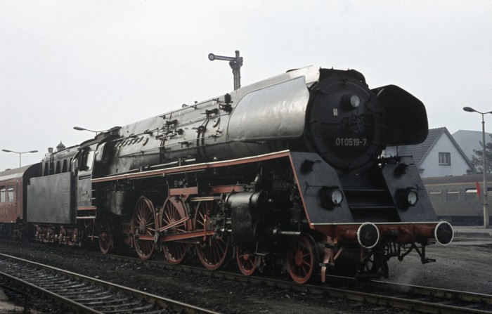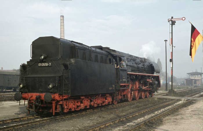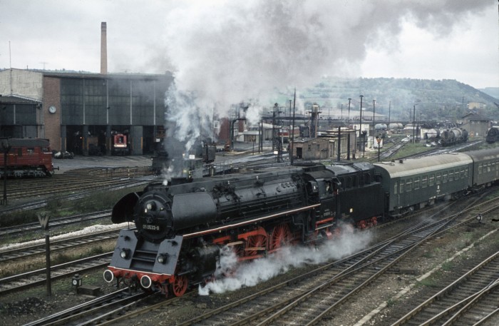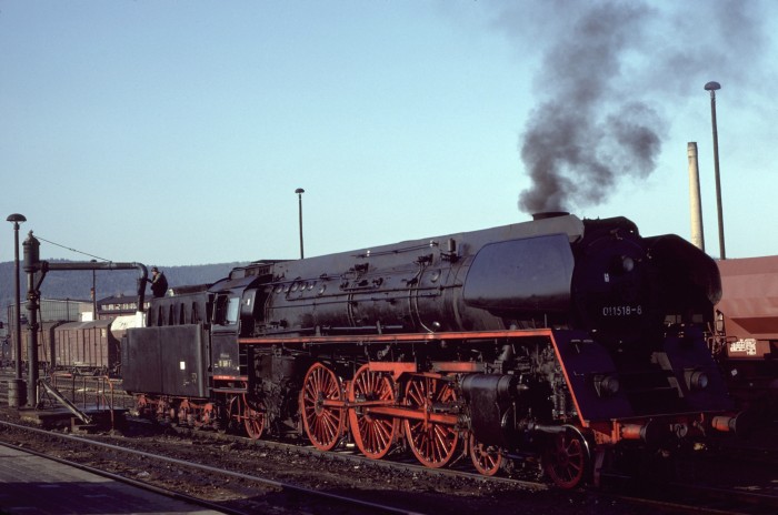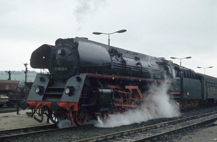 Die 01 0519 später noch wieder - allerdings ohne Ölfeuerung - bei den EFZ betriebsfähig, setzt im Bahnhof Saalfeld vor den bekannten