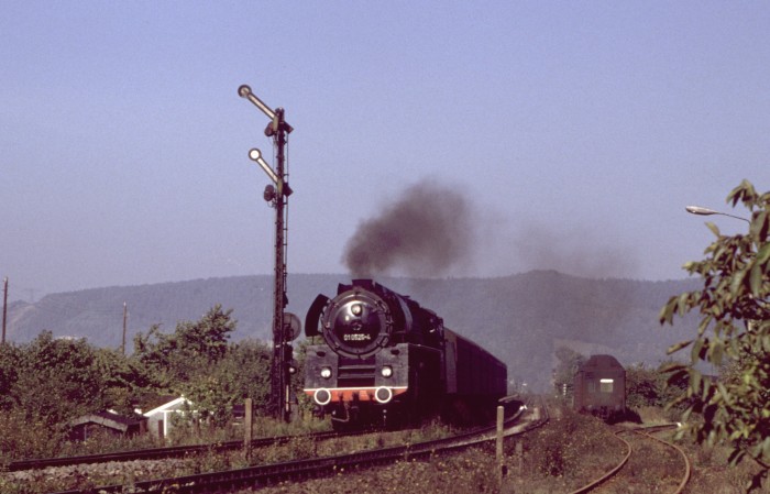 01 0525 mit dem P 3003 aus Leipzig am Einfahrsignal der Saalebahn vor Saalfeld, um 10:50h am 08.10.1978.