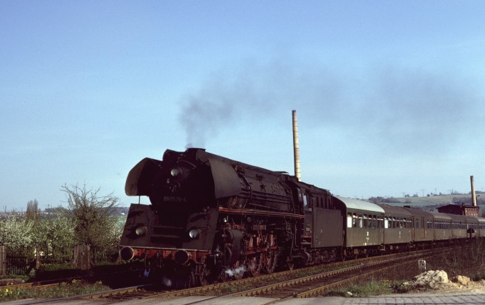 01 0525 mit P 4006 Ausfahrt Saalfeld Richtung Jena, am 10.05.1980.