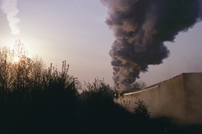 Täglich, pünktliche Vorgänge: Sowohl der Zug als auch der Qualm aus dem Stahlwerk,