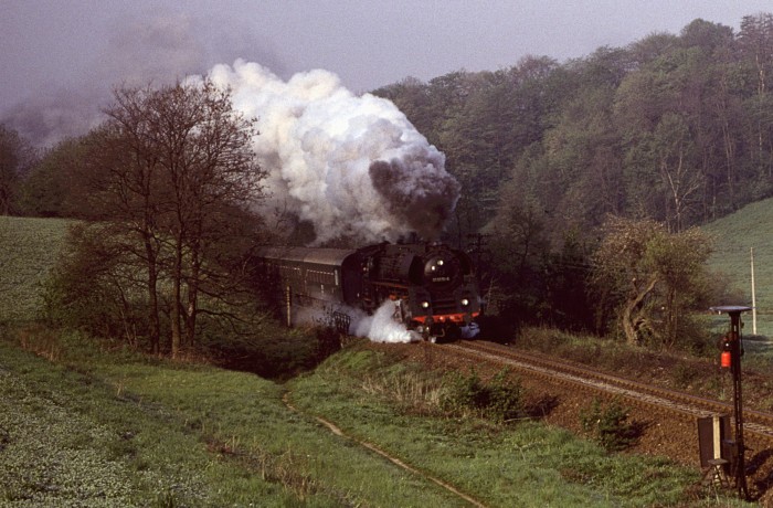 01 0534 mit P 8012 nach der Abfahrt im Haltepunkt Neunhofen, um 7:08h, am 10.05.1980.