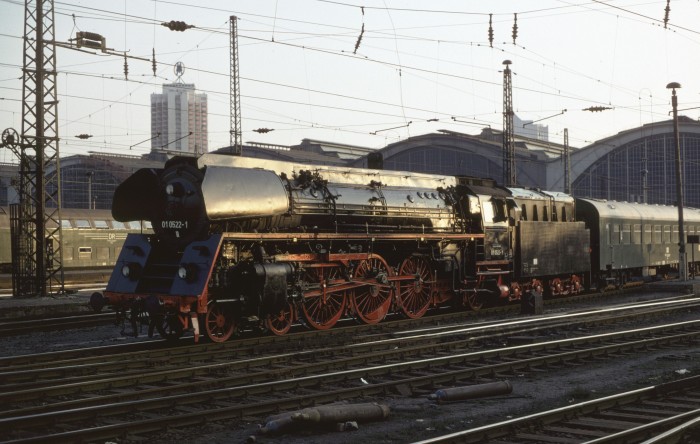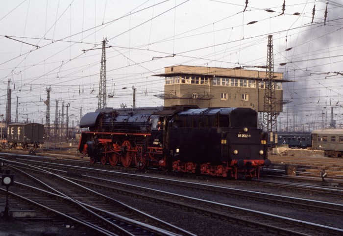 01 0522 kommt rückwärts an den Zug gefahren, zur Übernahme des an diesem Tag extrem schweren Messe-Sonderzug “29701”